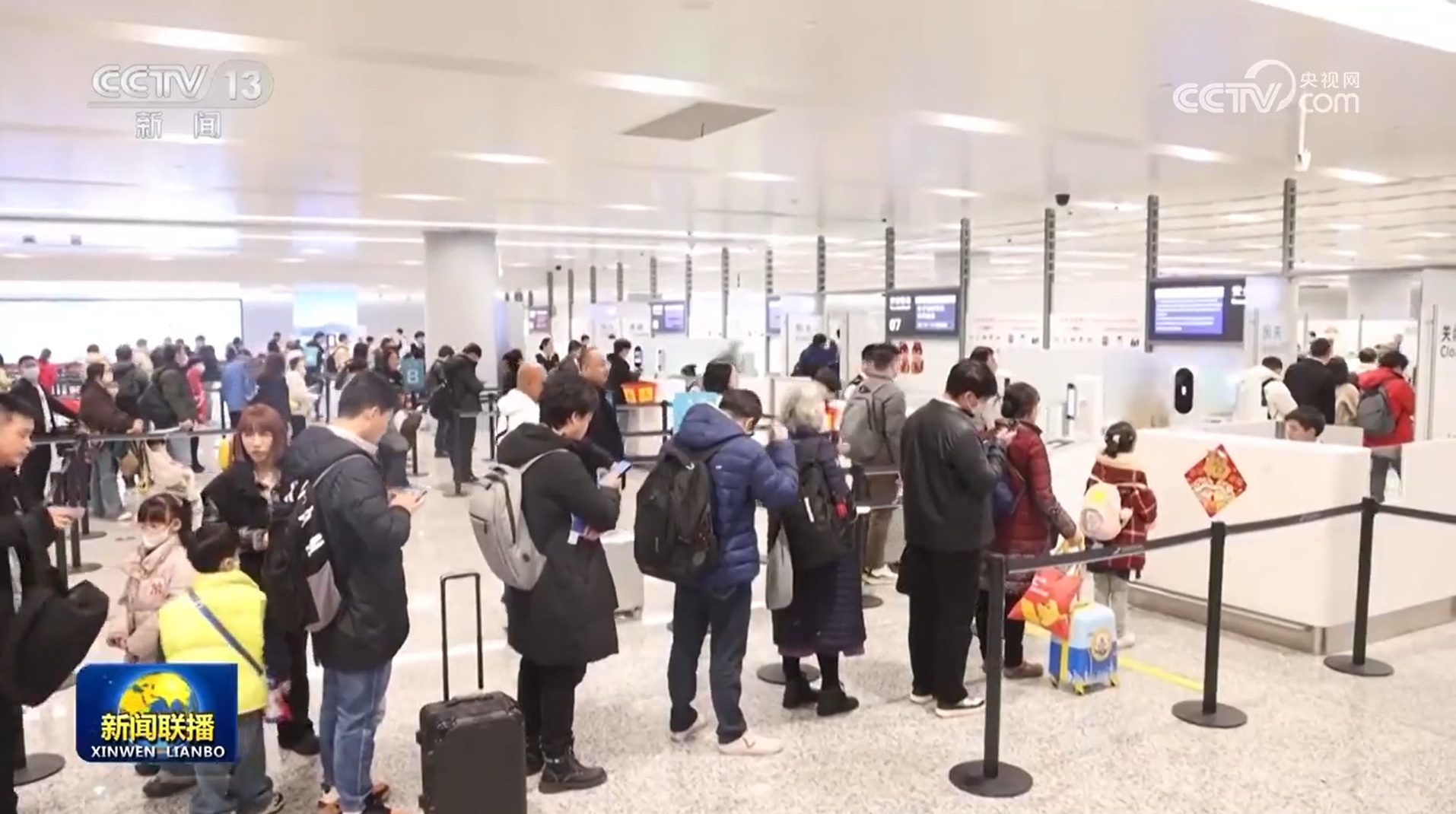 央视网消息(新闻联播):2025年综合运输春运工作专班数据显示,1月26日,春运第13天,全社会跨区域人员流动量预计27547万人次。铁路春运客流保持高位运行,预计发送旅客1455万人次,计划加开旅客列车2091列。
