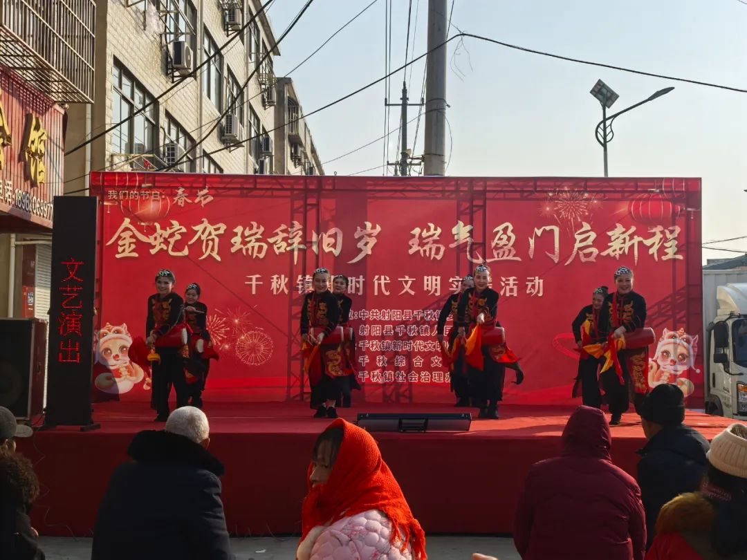 金蛇贺瑞辞旧岁,瑞气盈门启新程。为营造浓厚的节日氛围,传承弘扬中华优秀传统文化,近日,千秋镇新时代文明实践所、综合文化站、社会治理办等部门联合开展了“我们的节日·欢乐中国年”文艺汇演暨新年市集活动,为辖区群众送上文艺演出、免费春联、法治宣传、全民阅读普及等形式多样的文化服务,吸引了周边的群众前来“赶集”。