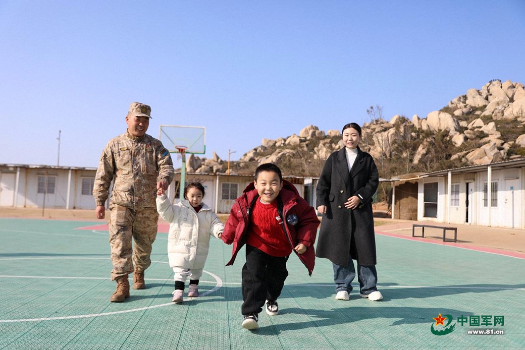 岛上环境恶劣,交通不便,为了使军属们能在这里过一个舒心年,该旅精心准备了一系列“便利服务”:组建迎军属“幸福专车”,从出站口到营门口“点对点”接送;搭建家属来队用房,改善各类配套设施,增加常用的电器炊具,驻训探亲也能“拎包入住”;为丰富官兵文体生活,平整土地,搭建起了篮球场,军娃们也有了撒欢儿的场地……