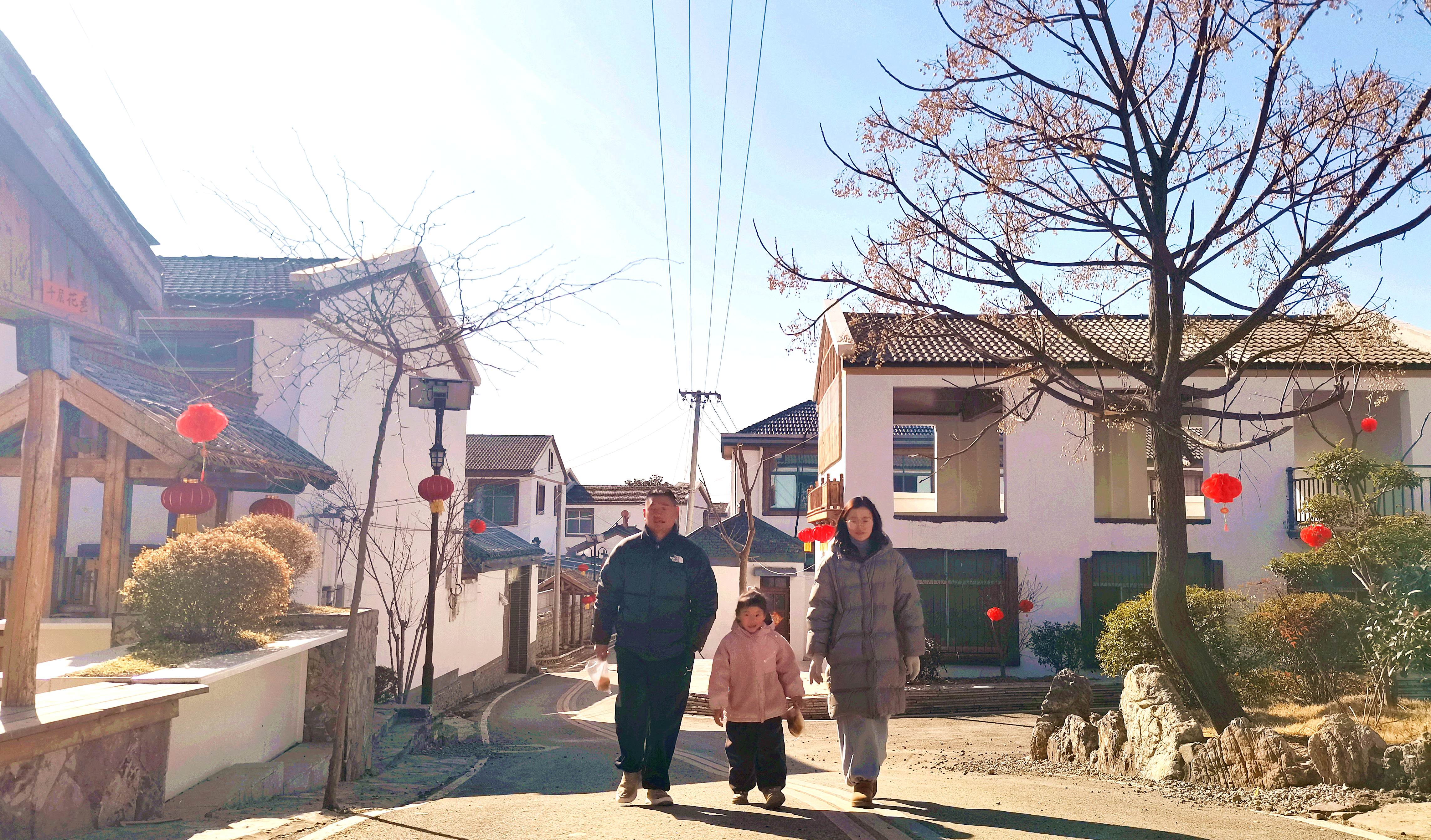 沿着村中“彩虹路”前行,记者来到石屋部落区域。这片村民搬迁空置的老房子被改造成特色商铺和民宿,原色木材搭配石头、仿古瓦片,悬挂各类新春装饰,十分喜庆。