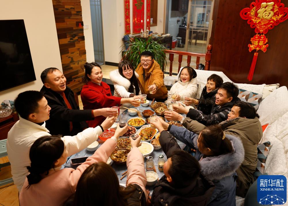 2023年1月21日,贵州省遵义市正安县一户居民在家里吃年夜饭。新华社发(赵永章 摄)