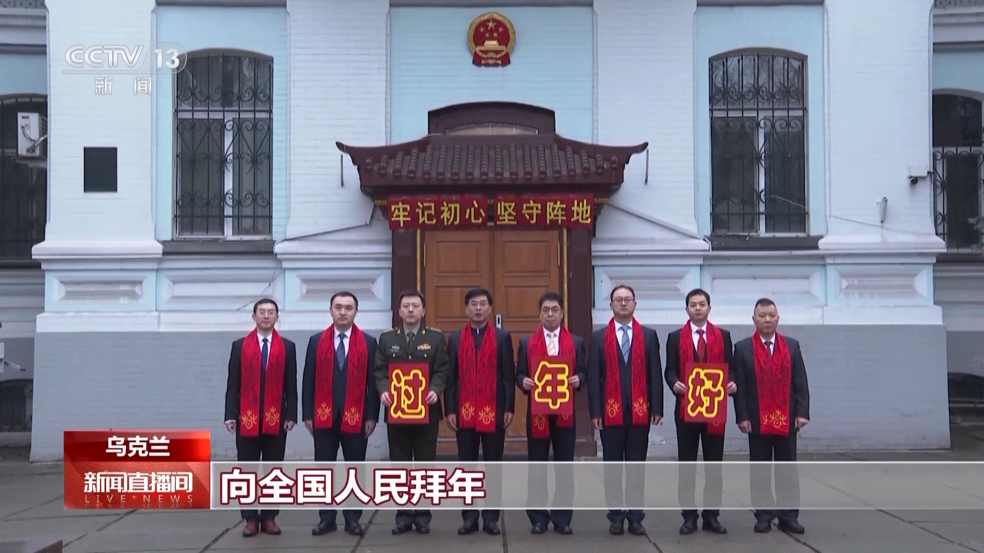 中国驻乌克兰使馆全体馆员给祖国人民拜年。
