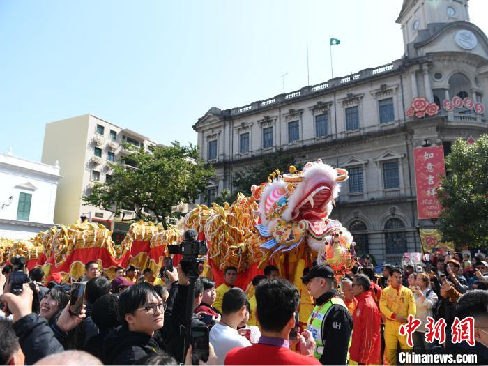 乙巳蛇年大年初一,记者来到澳门标志性建筑——大三巴牌坊前,在众多市民、游客的惊呼中感受龙腾狮跃的热闹新春。