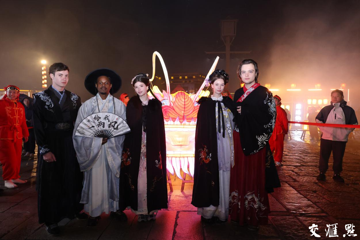 当夜幕降临,新春的喜悦随着“板凳龙灯”的蜿蜒游走继续弥漫开来。60余名村民舞动着长达100米左右的“板凳龙灯”,那壮观的场景就像是一条闪耀着光芒的巨龙在夜色中穿梭。一位参与舞龙的村民刘迎强说:“每年春节,我们都会舞动‘板凳龙灯’,这是我们这边的传统,包含着我们对新年的美好祝福。希望新的一年风调雨顺,幸福安康。”来自坦桑尼亚的南京信息工程大学留学生杜文龙,来中国已经十年了,目前通过了HSK六级考试。这是他在中国度过的第四个春节。在中国过大年,他爱上了中华传统文化,喜欢美丽的风景,也喜欢热情的中国人。“不只是我,我的很多来自世界各个国家的同学,毕业后都希望能够留在中国、留在江苏。”杜文龙向记者表达了新春愿望。