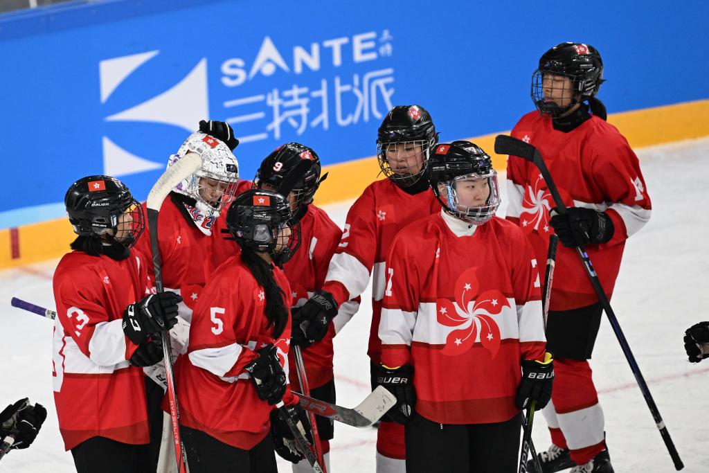 2月3日,中国香港冰球女队球员在比赛结束后。新华社记者 陈振海 摄