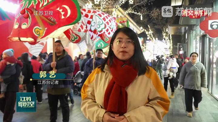 江苏台记者郭艺说:“春节期间,在南京这家商场,每天都会上演精彩的鱼灯巡游活动。绚丽的鱼灯象征着年年有余、风调雨顺,给现场的市民游客带来吉祥如意的好彩头。”