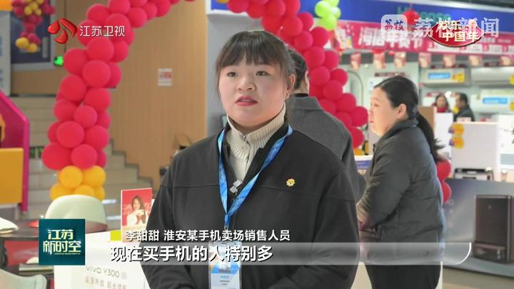 淮安某手机卖场销售人员李甜甜说:“现在买手机的人特别多,现在销量对比之前上涨了400%,以旧换新的补贴优惠力度也相当大。”
