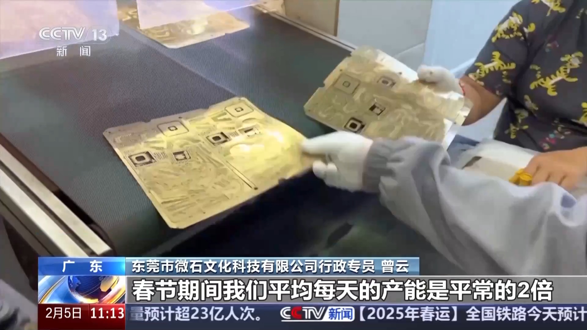 东莞市微石文化科技有限公司行政专员 曾云:现在中国文化在海外深受追捧,我们就把国潮元素融入了产品,像西游记、非遗、中国建筑、民族服装等等,销量非常好,春节期间我们平均每天的产能是平常的2倍,这样才能赶得上订单的要求,预计今年的海外销售能增长50%以上。