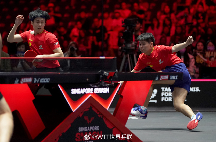 在今日举行的WTT新加坡大满贯男双1/4决赛中,王楚钦/林诗栋3-1战胜卡尔森/法尔克,晋级四强。比分:11-4,10-12,14-12,11-5。