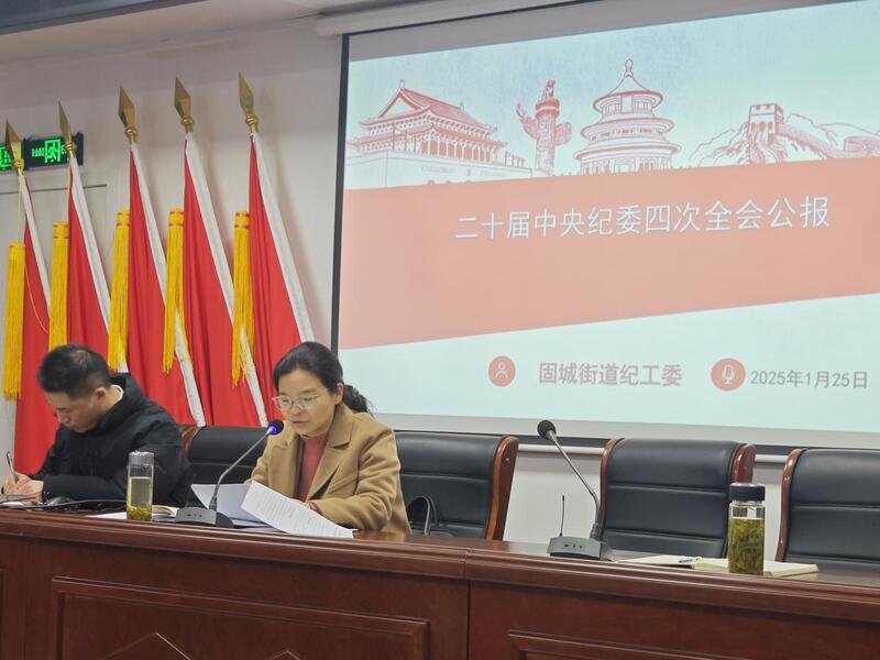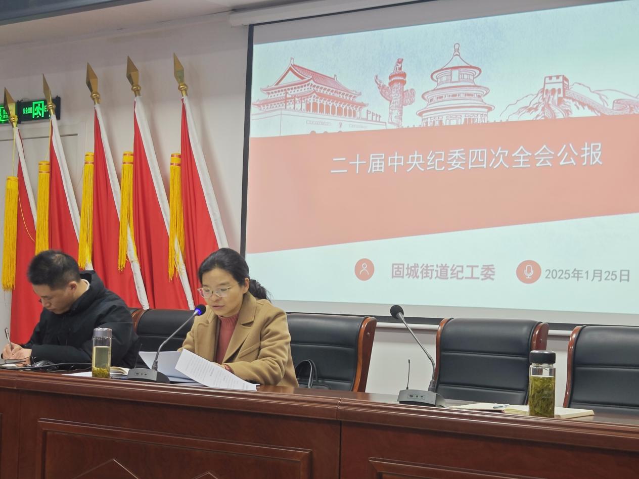 会上,固城街道党工委委员、纪工委书记陈芳芳作“二十届中央纪委四次全会公报”专题宣讲。陈芳芳主要围绕反腐败斗争取得的成果、目前反腐败斗争的形势、腐败产生的原因及未来的展望等三个要点作了解读,希望全体党员不断提高政治判断力、政治领悟力、政治执行力等,自觉增强政治意识、法纪意识、廉洁意识,带头抵制不良风气侵蚀,带头严守党的纪律规矩。