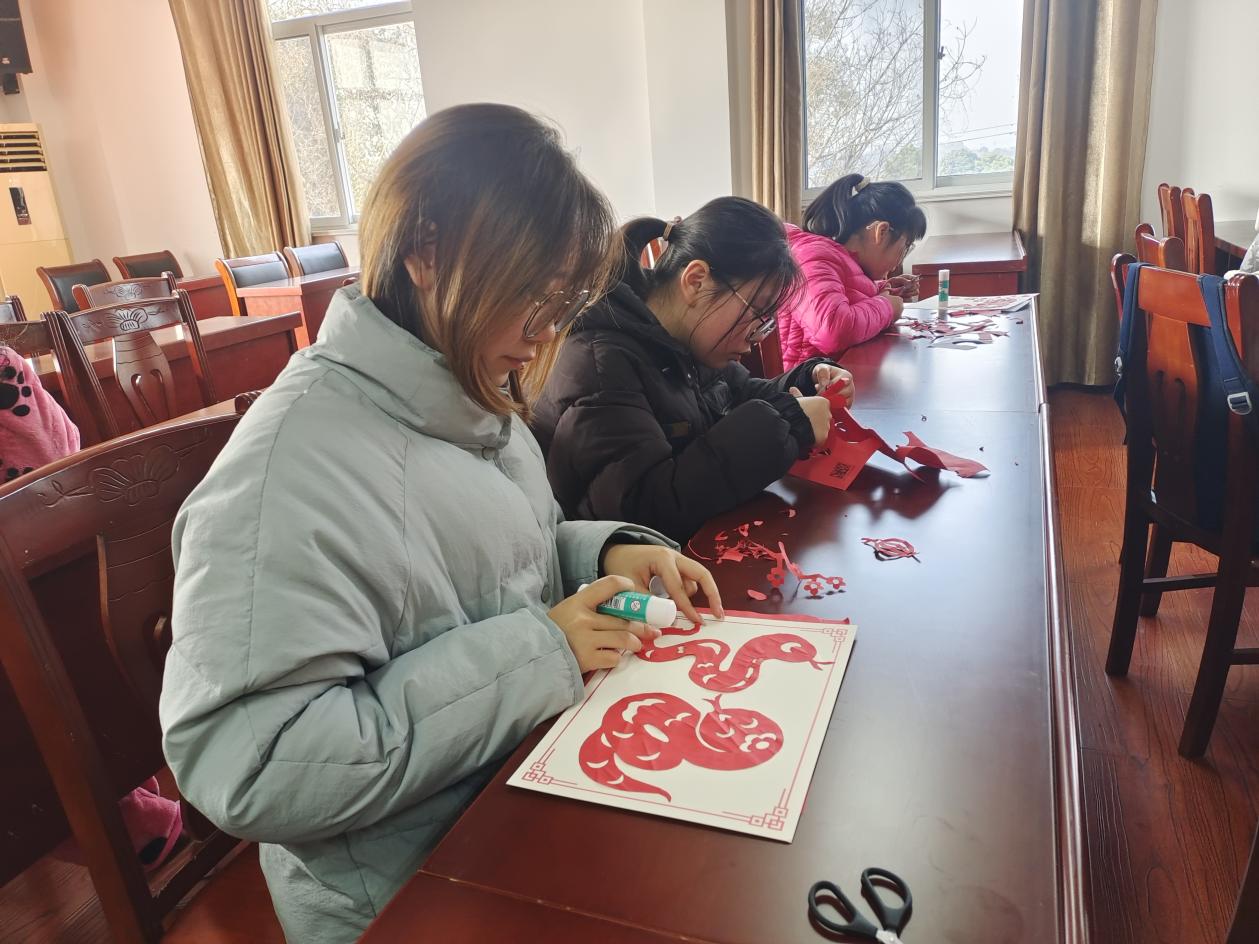 纸艺匠心传承,指尖乾坤剪出新春。剪纸活动现场,彩纸缤纷,剪刀飞舞。孩子们目不转睛,折叠、裁剪,简单动作蕴含乾坤,不一会儿,一幅幅寓意吉祥的作品跃然纸上,生肖灵动、福字饱满,传统剪纸艺术在这方小小天地重焕生机,也让孩子们体悟到手工艺背后的专注与坚韧。