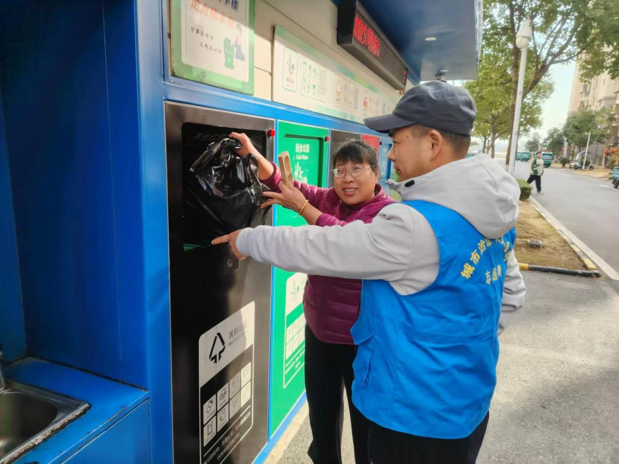 在朝凤嘉园小区,志愿者们积极开展桶边指导工作。垃圾桶是垃圾分类的关键节点,工作人员在垃圾桶旁耐心地向居民讲解如何正确区分各类垃圾,例如厨余垃圾、可回收物、有害垃圾和其他垃圾的具体种类。针对居民在分类过程中存在的疑惑,工作人员一一解答,现场示范正确的分类投放方法,让居民更加直观地了解垃圾分类的要点。