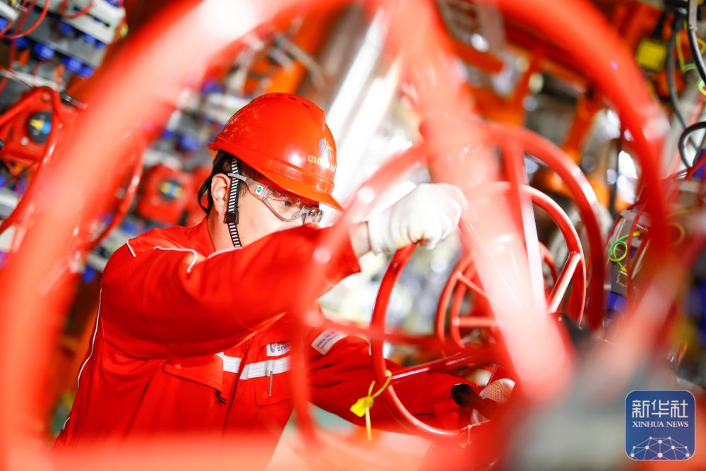 2月8日,工人在渤中26-6油田海上作业平台检查设备电力系统。