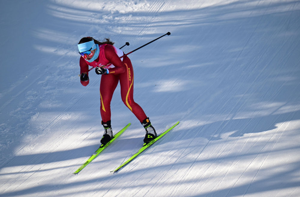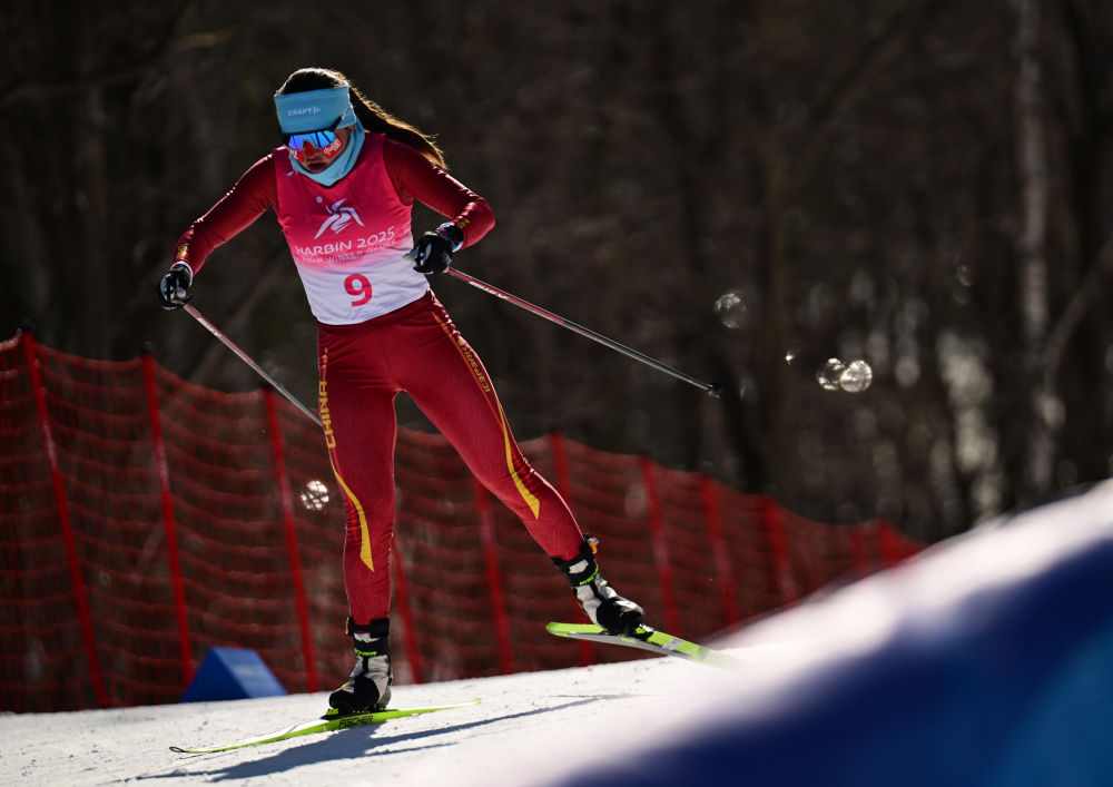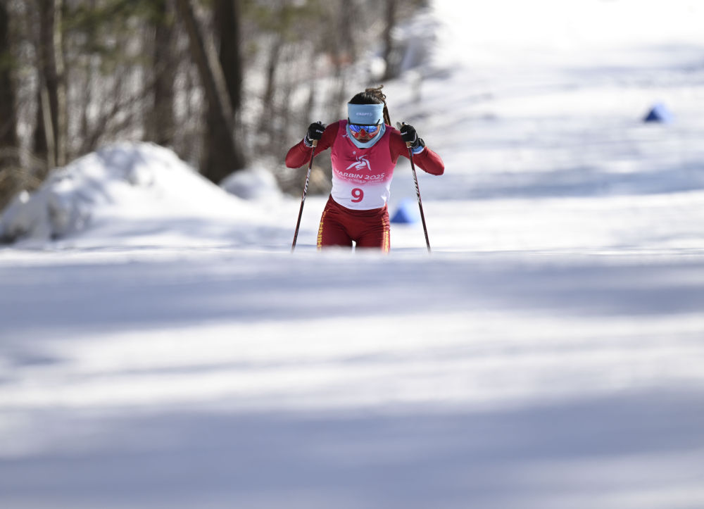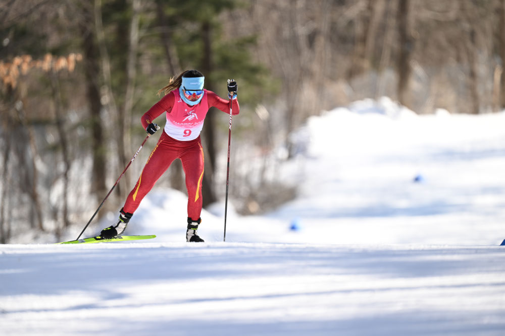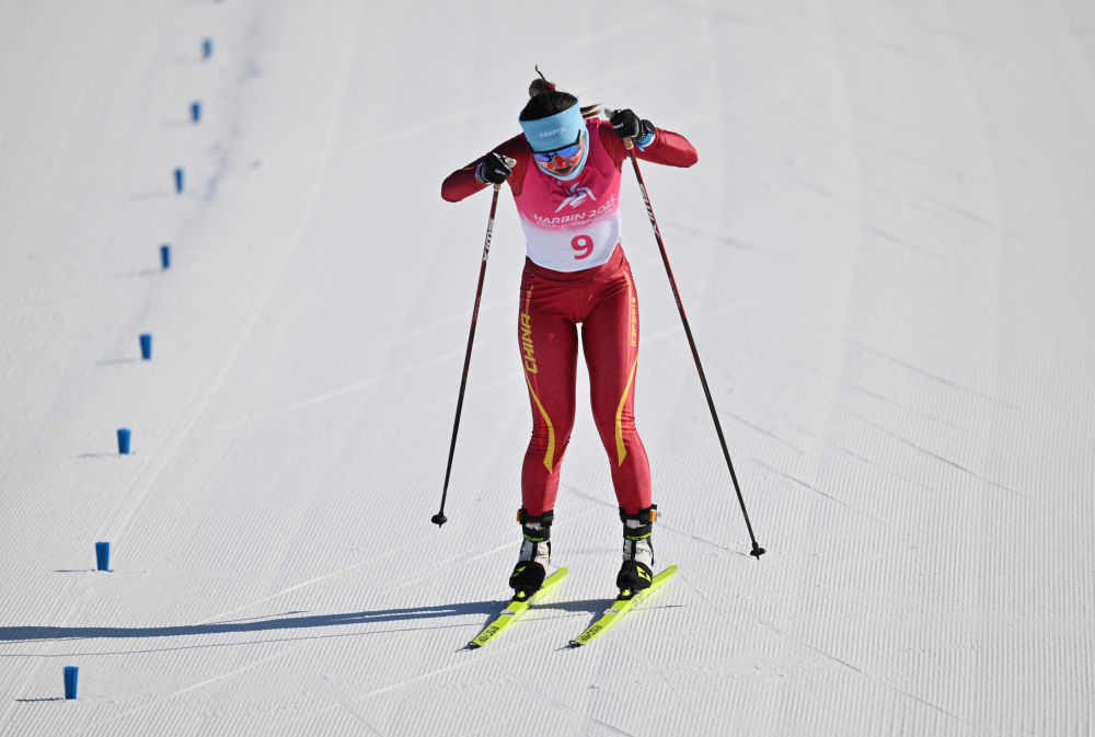 2月9日,在第九届亚冬会越野滑雪女子5公里(自由技术)比赛中,中国选手巴亚尼·加林获得金牌。
