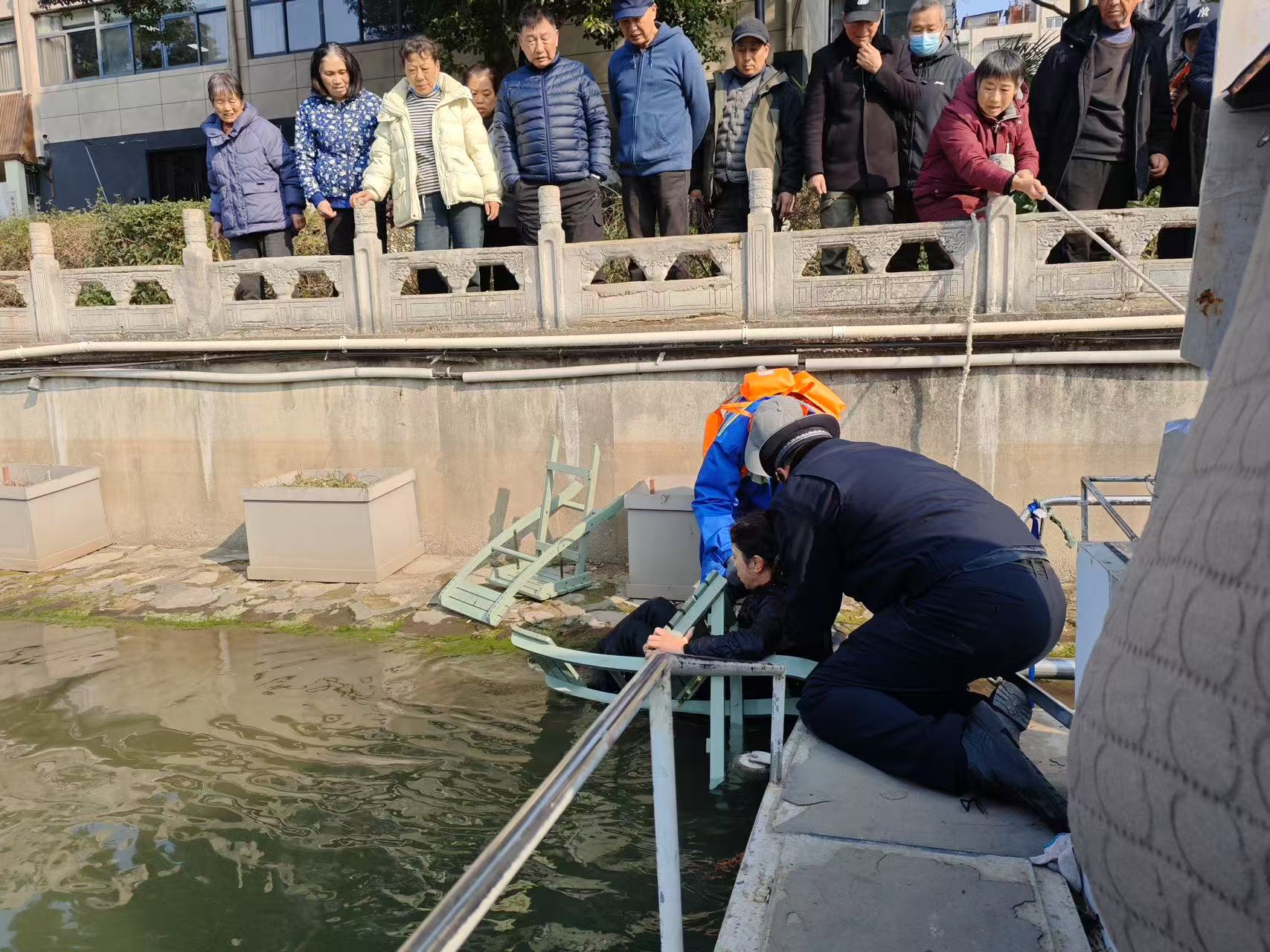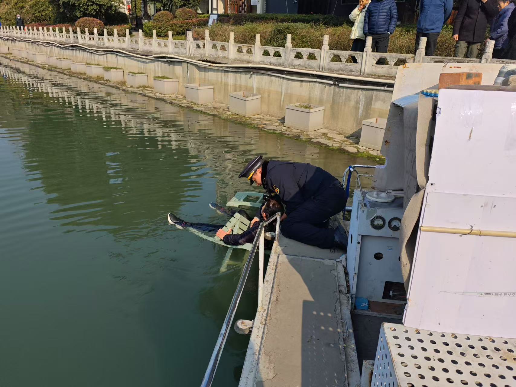 “当时很紧张。”朱伟说,紧急时刻,他看到不远处有一条负责河道管养的清捞船,急忙呼喊船员帮忙。“我们上船后,船员以最快速度驶向落水点。”靠近后,朱伟和陈力列发现,落水市民正紧紧抱着一把木质凳子——那是现场其他市民扔给他的救命工具。“落水者抱着板凳,头向上仰,没有沉下去,给我们争取了救助时间。”