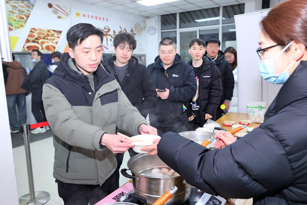 传承做花灯摊位上,在青年志愿者的帮助下,居民们纷纷开始制作花灯,摆灯架、连灯饰、挂灯线,在互相交流之间,体验亲手制作元宵花灯的快乐;趣味包汤圆摊位上,红管志愿者向青年们分享元宵节传统文化故事,并邀请大家一起动手包汤圆、煮汤圆、品尝汤圆,热气腾腾的汤圆驱散了冬天的寒冷,拉近了青年职工彼此之间的距离。