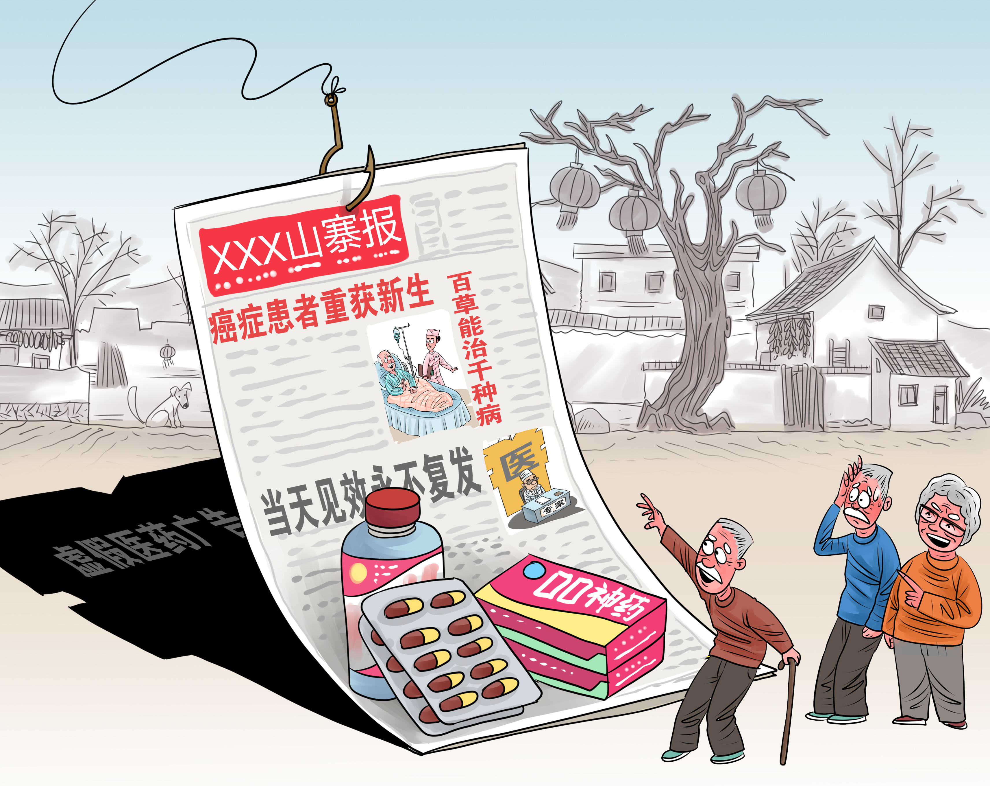 “癌症患者重获新生”“百草能治千种病”“当天见效不复发”……在部分农村地区,一些未经审批的浮夸医药广告被印刷成报刊样式,误导受众、扰乱医疗秩序。