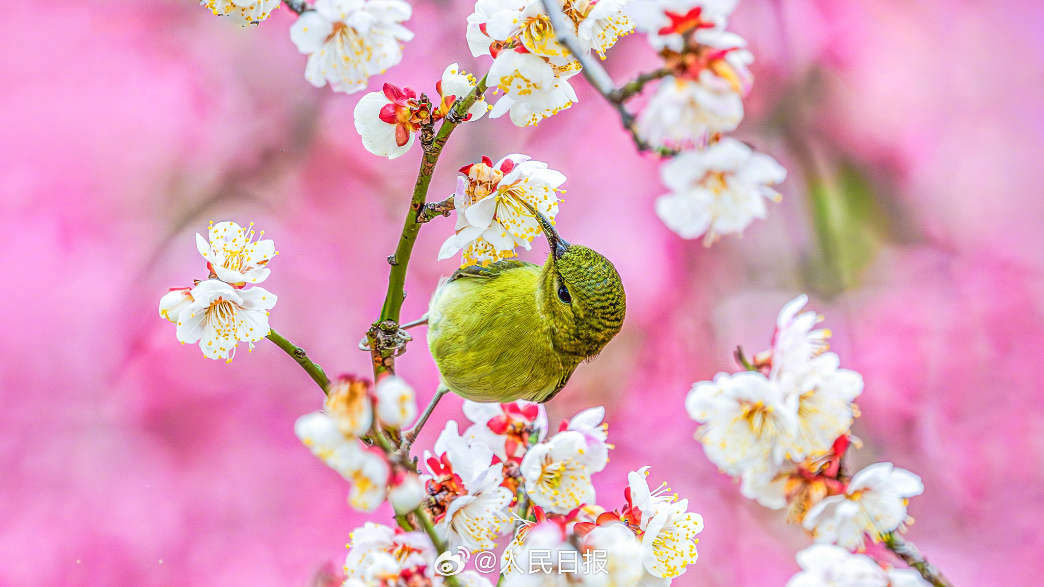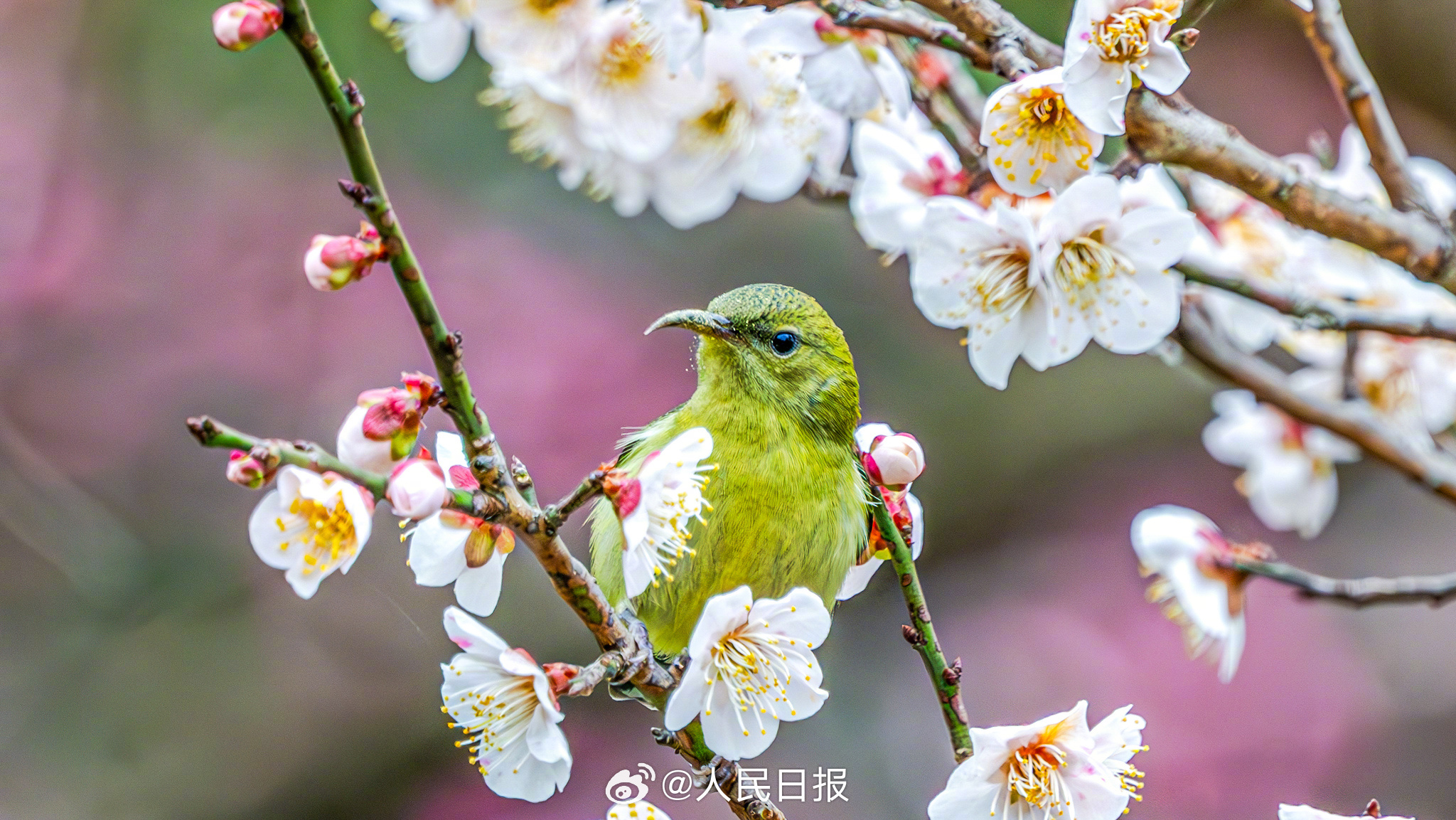 2月16日,重庆,南川区大观镇梅华园。暗香浮动,鸟儿飞舞,一派生机盎然。