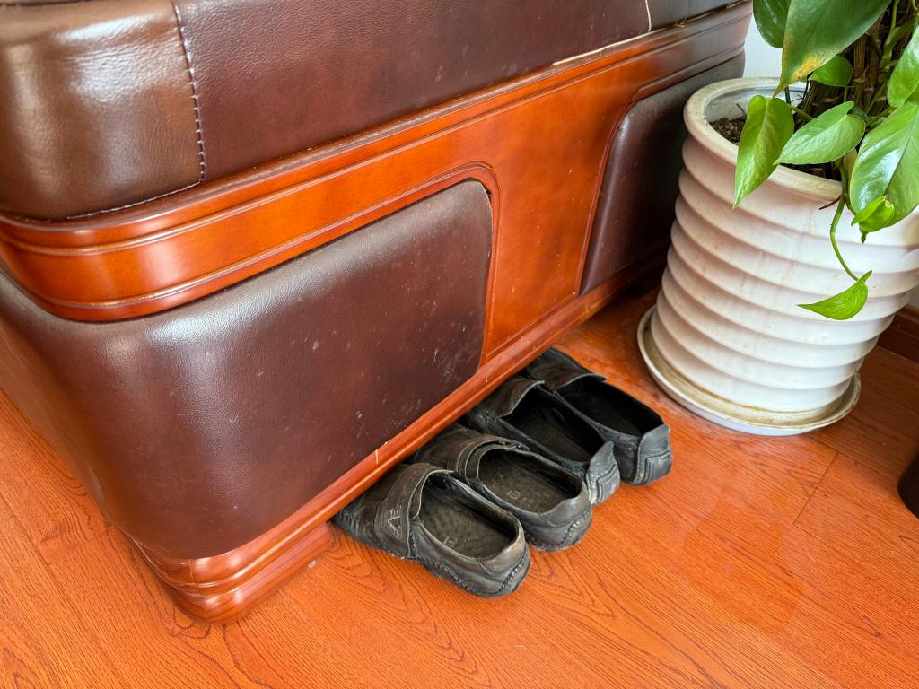 张义民办公室里放着换下来的鞋子。新华社记者 郭敬丹 摄
