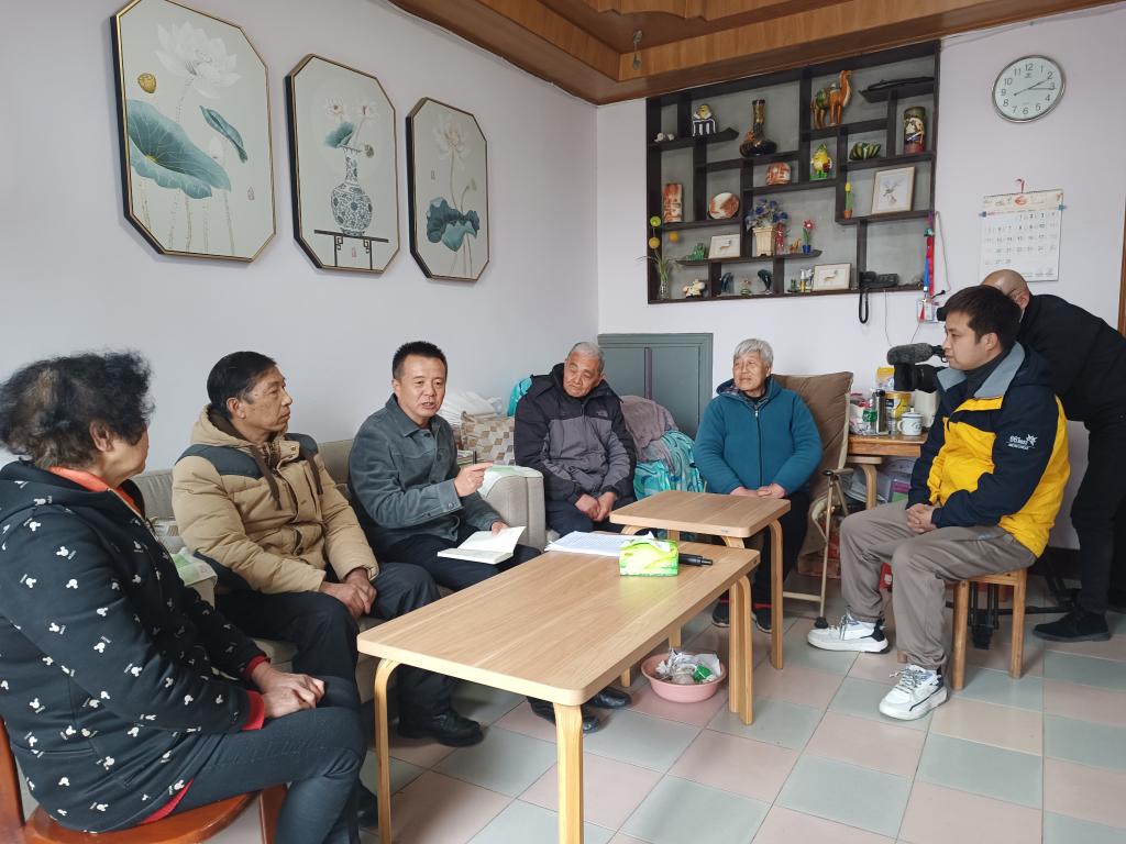 张义民(左三)在村民家中调研。(受访者供图)