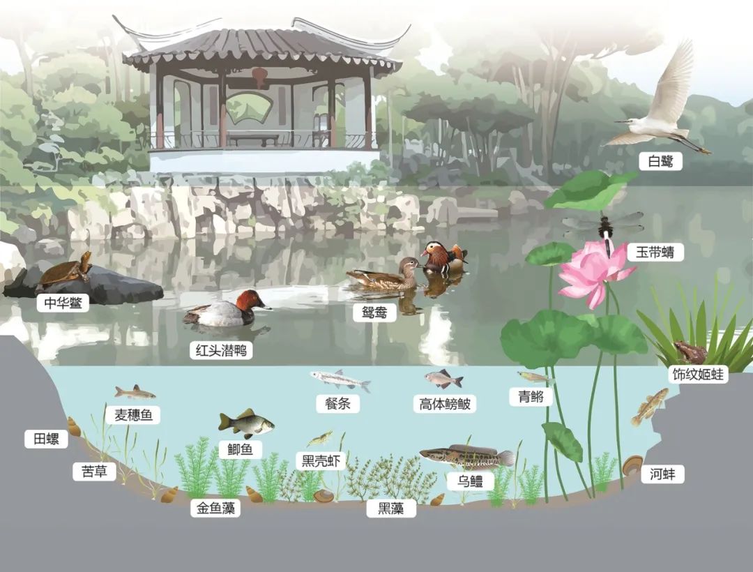 植入的水草不仅要有净化能力,还要保障全年不同季节的覆盖率,得精挑细选。水生动物的数量也要控制在安全阈值以内。水草成活率低,就清理底泥,植上新土;鱼类繁殖过快,就引入一定数量的食肉鱼……经过反复试验,终于构建起了一片生机勃勃的“水下森林”。