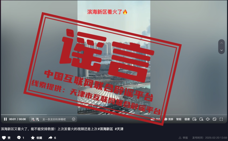 谣言:天津滨海新区着火了?