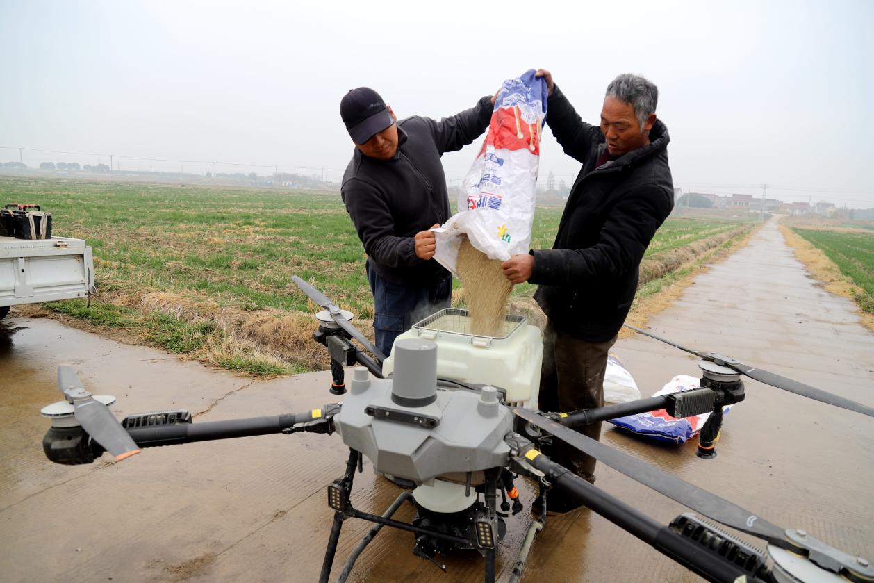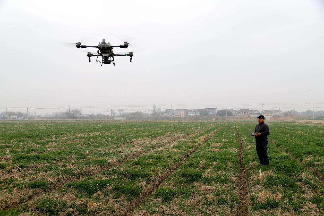 人勤春来早,春耕备耕忙。2月27日,在高淳区桠溪街道桠溪村金源农业农民专业合作社的麦田里,农机手正在利用植保无人机为小麦施肥,以科技力量助力春耕生产。