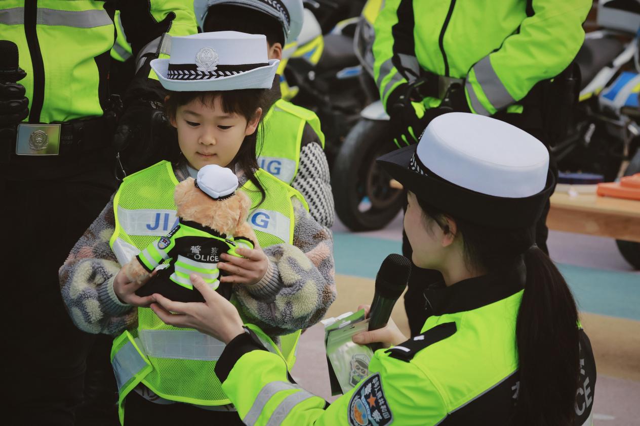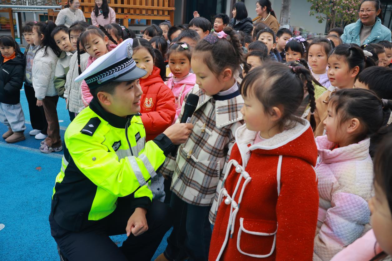 有奖问答环节更是将活动推向高潮。交警们围绕“过马路注意事项”“认识交通标志”等基础常识提问,小朋友们纷纷高举小手,积极抢答,凭借所学知识赢取精美小礼品,现场气氛热烈非凡。
