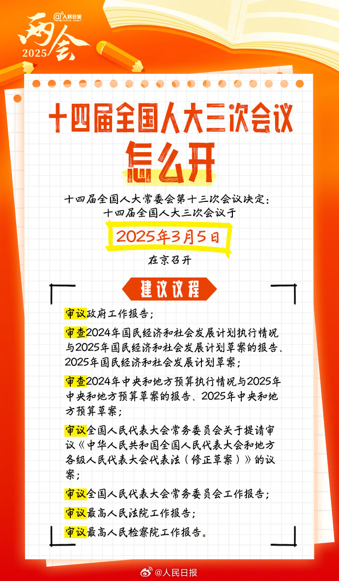 十四届全国人大三次会议和全国政协十四届三次会议将分别于3月5日和3月4日在北京开幕。