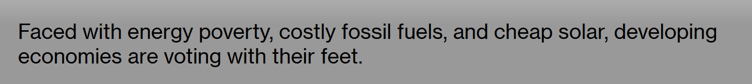 报道说,发展中经济体面临选择,一边是能源贫困和昂贵的化石燃料,而另一边则是便宜的太阳能。事实上,他们已经做出选择。