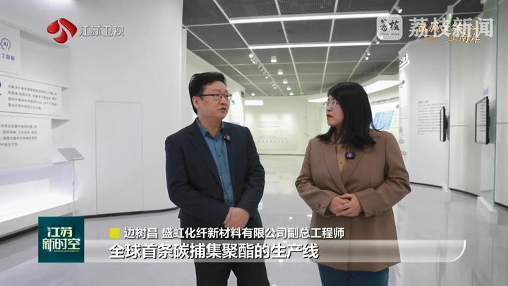 盛虹化纤新材料有限公司副总工程师边树昌说:“2024年,盛虹集团建成全球首条碳捕集聚酯的生产线。高浓度二氧化碳经过捕集提纯制备甲醇,包括制备乙二醇、聚酯纤维。这一个线路的打通,是一个颠覆性的创新,引领了化纤行业绿色发展。”