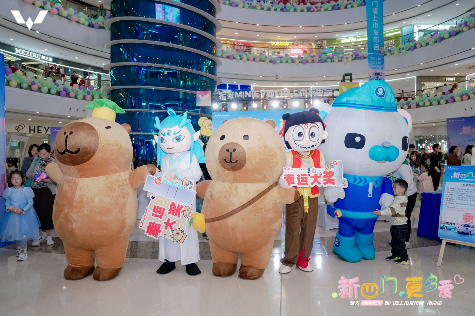 抽奖环节为亲爱的五菱萌主们准备了大奖,小米冰箱以及哪吒电影票等惊喜好礼;互动区也为大家准备了软萌的卡皮巴拉周边,还有可爱的卡皮巴拉人偶,活动现场让每一位萌主们都能收获满满。