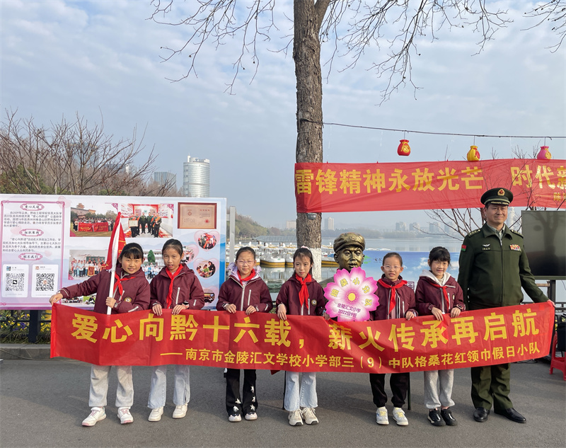 “原来有这么多解放军哥哥姐姐们在默默帮助山区的孩子,长大后我也想成为他们那样的人!”在第62个学雷锋纪念日和第26个中国青年志愿者服务日来临之际,南京市金陵汇文学校小学部三(9)中队“格桑花”红领巾假日小分队来到美丽的玄武湖畔,聆听了一个关于爱心助学接力的温暖故事。
