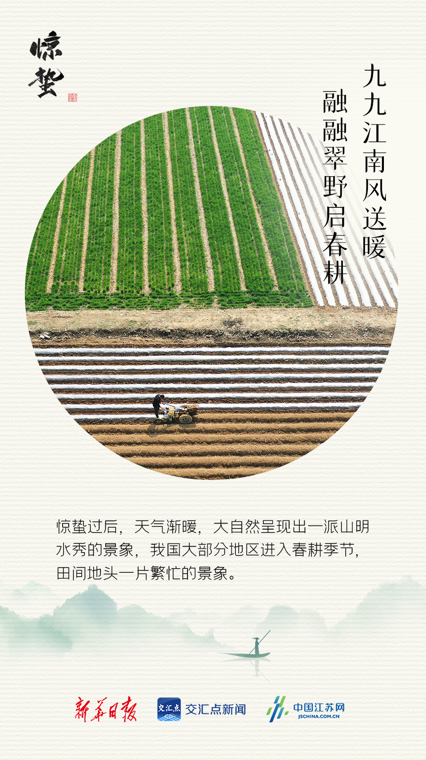 惊蛰,古称“启蛰”,是二十四节气中的第三个节气,也是仲春时节的开始。此时节,天气渐暖,杏花绽蕾,春雷乍响,蛇虫惊醒,我国大部分地区进入春耕季节,田间地头一片繁忙的景象。