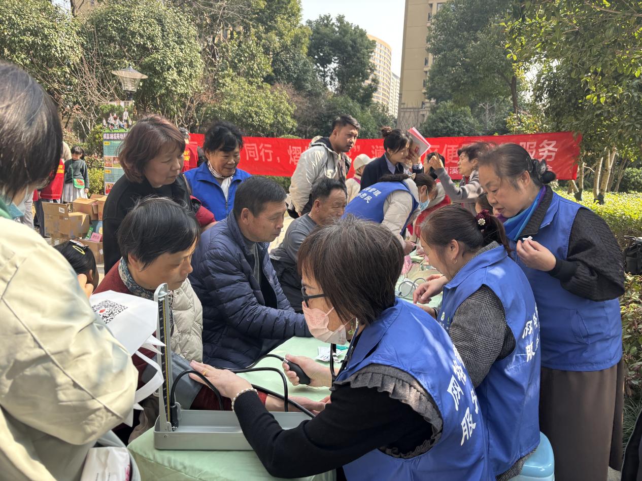 在咨询台前,居民们排起了长队,向工作人员询问各类政策问题。从惠民养老到医疗服务,工作人员耐心细致地为每位前来咨询的居民解答疑问,确保大家都能掌握最新的政策信息。在义诊区域,几位红管志愿者主动为居民提供血压、血糖检测及健康义诊,吸引了不少老年居民前来。其中,一位78岁的王阿姨正在志愿者的指导下做血压检查,志愿者叮嘱了许多高血压患者的健康知识,提醒王阿姨注意日常饮食和作息习惯。王阿姨认真点头倾听,表示会在日常生活中多加注意。