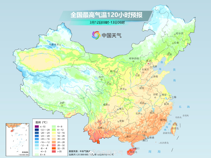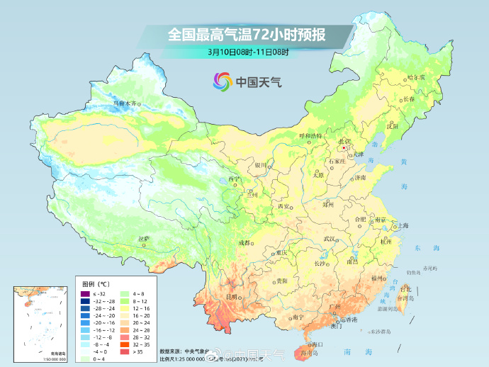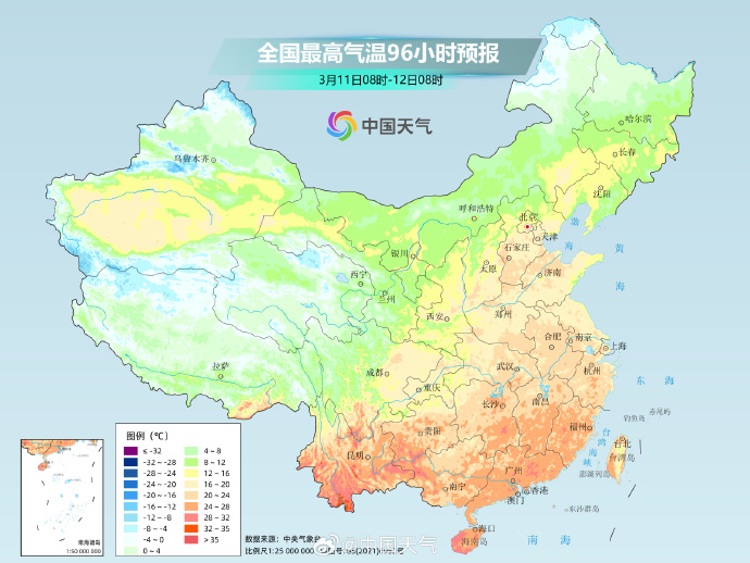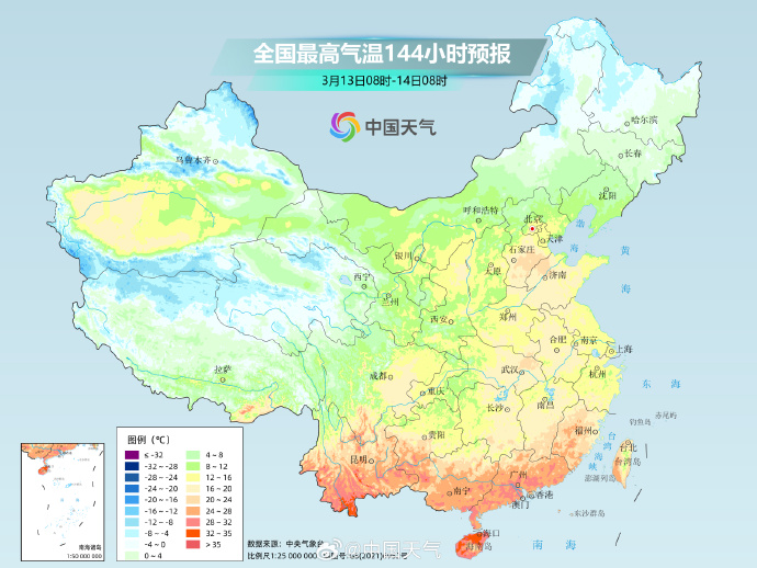 而南方大部受频繁阴雨影响,升温步伐略有滞后。今明两天,气温大多还处于较常年同期偏低水平,特别是长江中下游多地,最高气温都不足15℃。明天,上述地区最高气温可能会比北方的西北地区东部、华北一带还低,出现南北气温倒挂的情况。