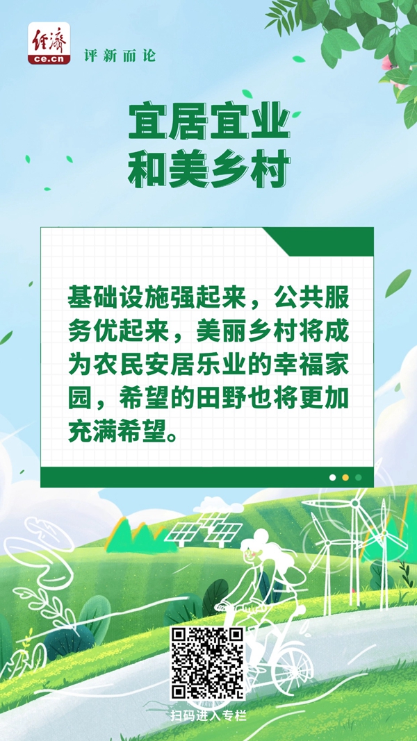 聚人气、赚财气,乡村的好山好水好风光有别样魅力。基础设施强起来,公共服务优起来,美丽乡村将成为农民安居乐业的幸福家园,希望的田野也将更加充满希望。(中国经济网评论员 梁瑜)