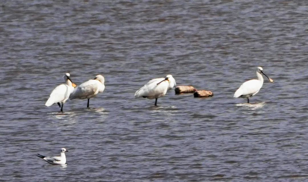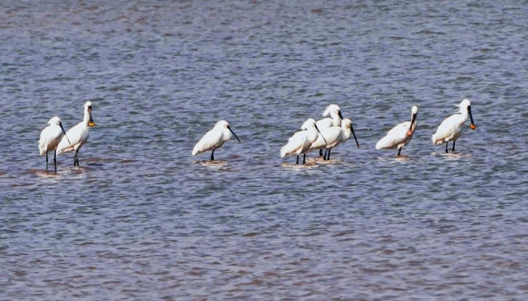数只罕见鸟类白琵鹭现身湿地