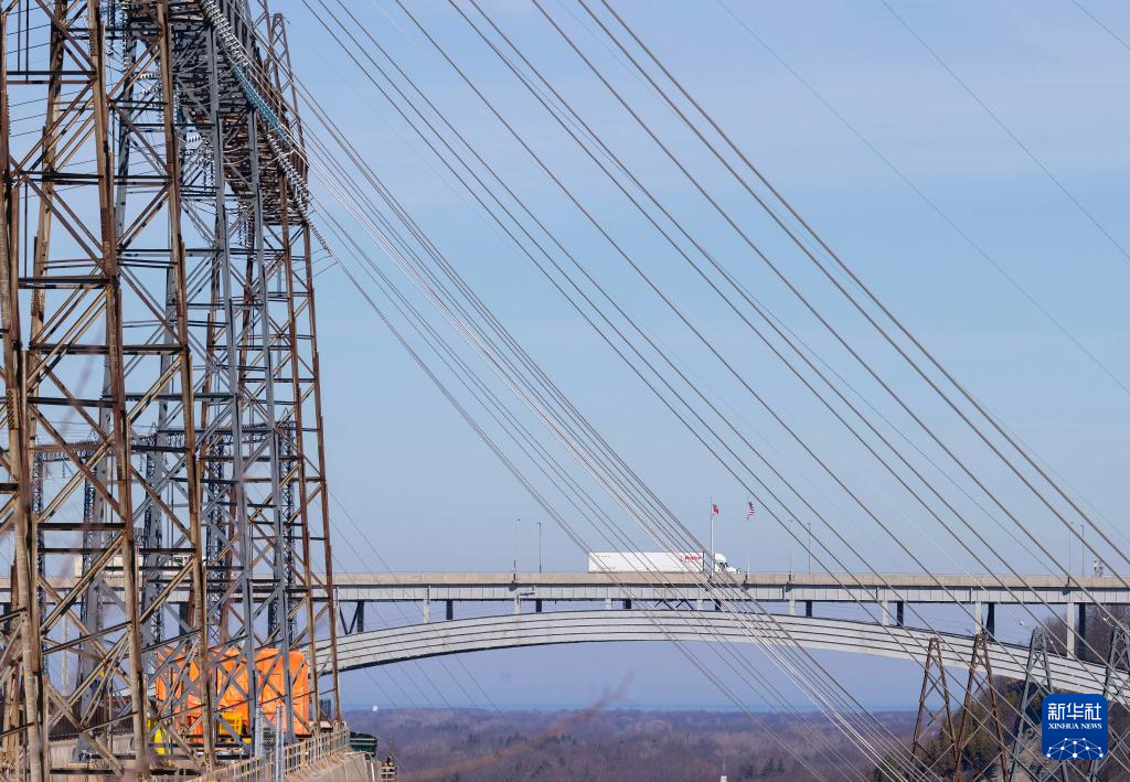 这是3月10日在加拿大安大略省尼亚加拉瀑布市拍摄的位于加美边境地带的亚当·贝克爵士水电站输电线和美国罗伯特·摩西·尼亚加拉水电站。新华社发(邹峥摄)