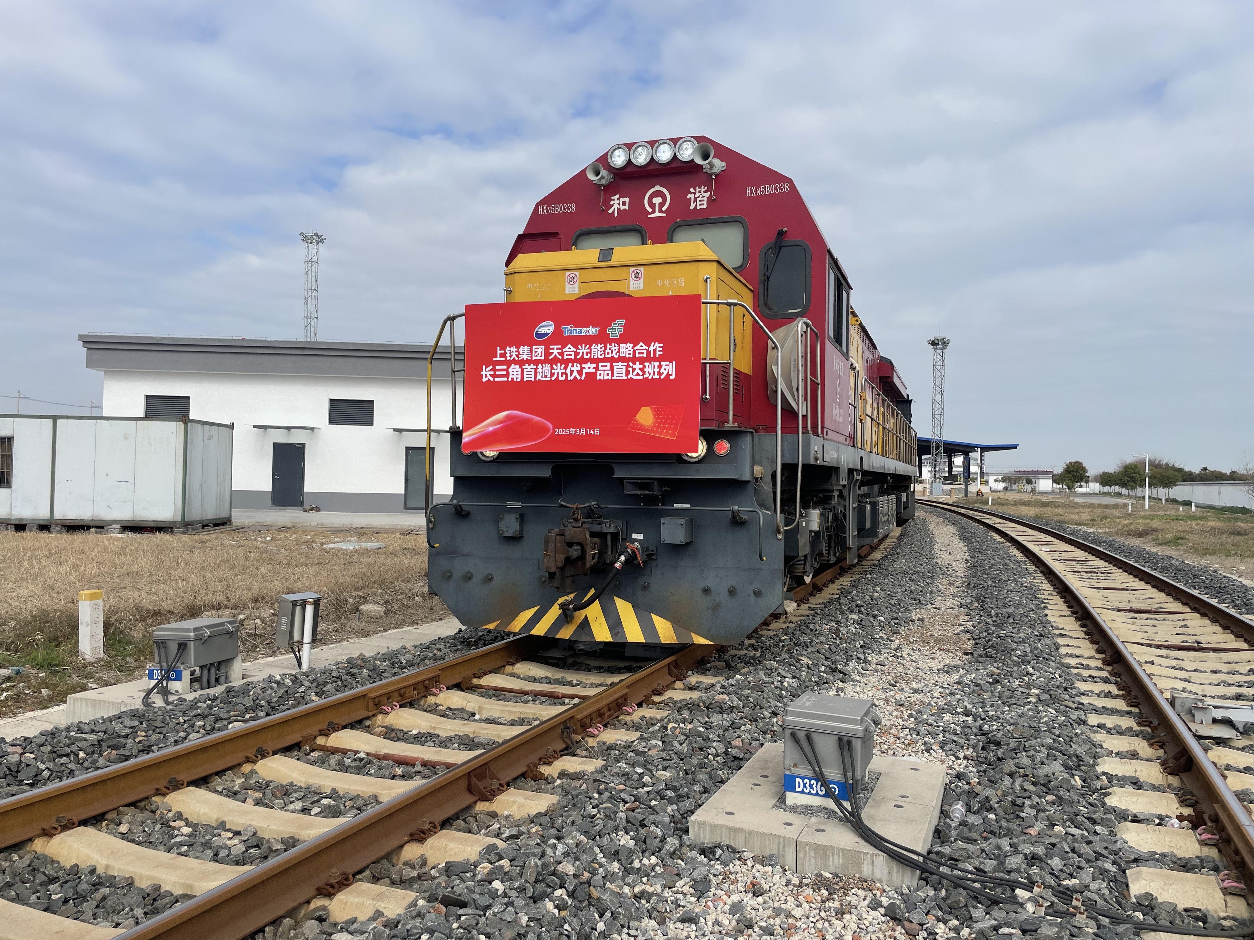 交汇点讯 3月14日上午,一列载有40车光伏产品的货运班列从中国铁路上海局集团有限公司(以下简称上铁集团)南京铁路物流中心盐城北站开出,驶向新疆维吾尔自治区博乐东站,标志着长三角地区首单“总对总”光伏产品运输战略合作协议正式落地。
