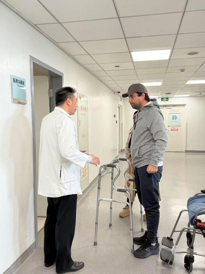 3月13日,BOUKTIR YOUSSOUF回到南京鼓楼医院做最后一次复查,此时的他虽然坐着轮椅,但已经可以自主从轮椅上站起来,借助步行器也能正常行走了。复查的结果,BOUKTIR YOUSSOUF恢复很棒,周六即可按照原计划返回阿尔及利亚。