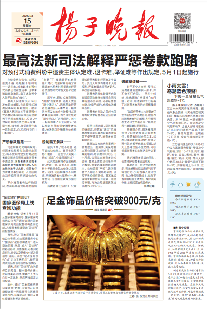 ↑扬子晚报A2版