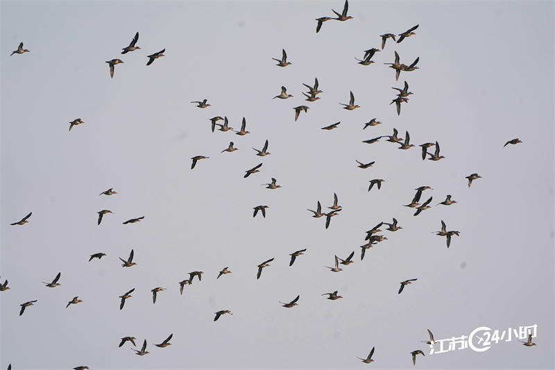 ||南京:大群花脸鸭飞翔成风景