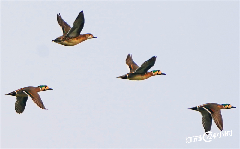(特约摄影 武家敏 8:58摄 9:45上线)3月15日,大群花脸鸭在南京江北绿水湾湿地上空飞翔,成为一道美丽的生态风景。据了解,花脸鸭是国家二级重点保护野生动物,因脸上斑纹酷似京剧花脸脸谱而得名。