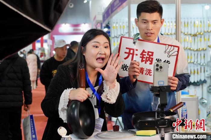 3月14日,主播对着直播镜头介绍炊具。董易鑫 摄