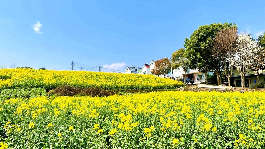 人间三月芳菲始,踏青赏花正当时。高淳区古柏街道三保村的油菜花不负春约,如约绽放,金花与村落人家构成一幅春意盎然的画卷。