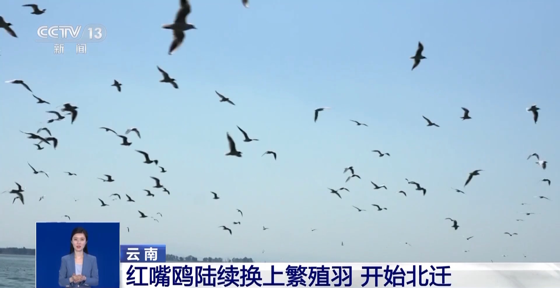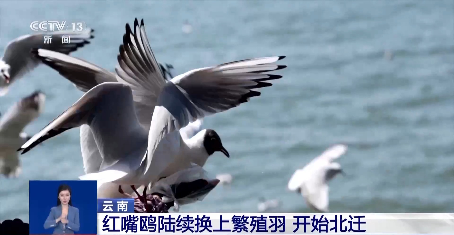 近日,来到昆明越冬的红嘴鸥群换上“黑头纱”繁殖羽,开始再次出发,启程北归。这场持续数月的“人鸥之约”已经进入倒计时,市民和游客纷纷抓紧最后的观鸥时机,与这群远道而来的白色精灵道个别。