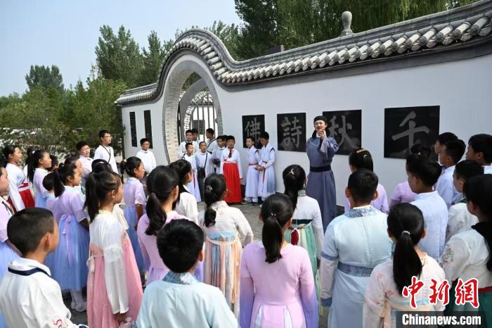 来自省内外的学生在王维水墨小镇参加研学活动。(资料图片) 吴遵民 摄