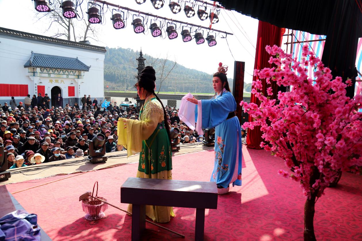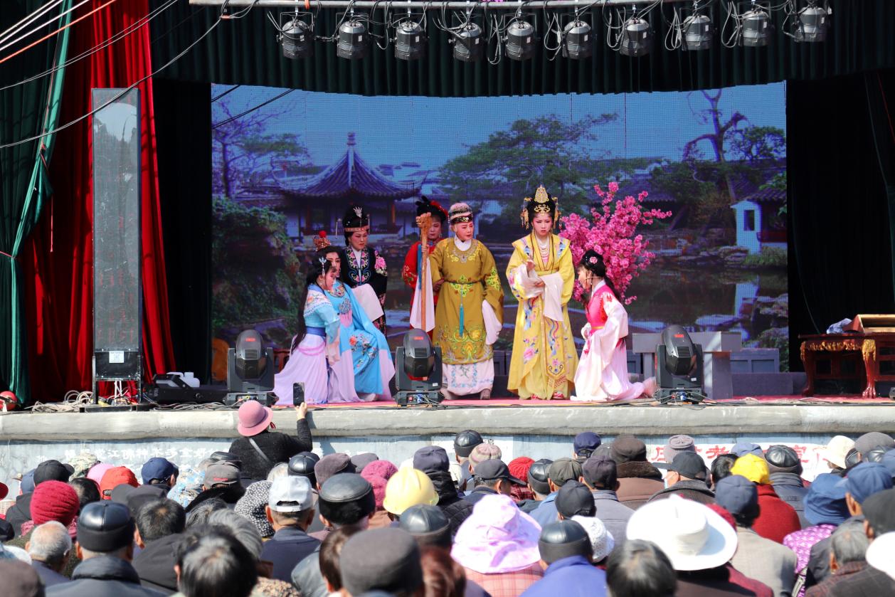 3月17日,伴随着阵阵鼓乐声,来自浙江杭州青年越剧团的演员们,正在高淳区桠溪街道穆家庄村搭建的戏台上表演越剧《红楼梦》。