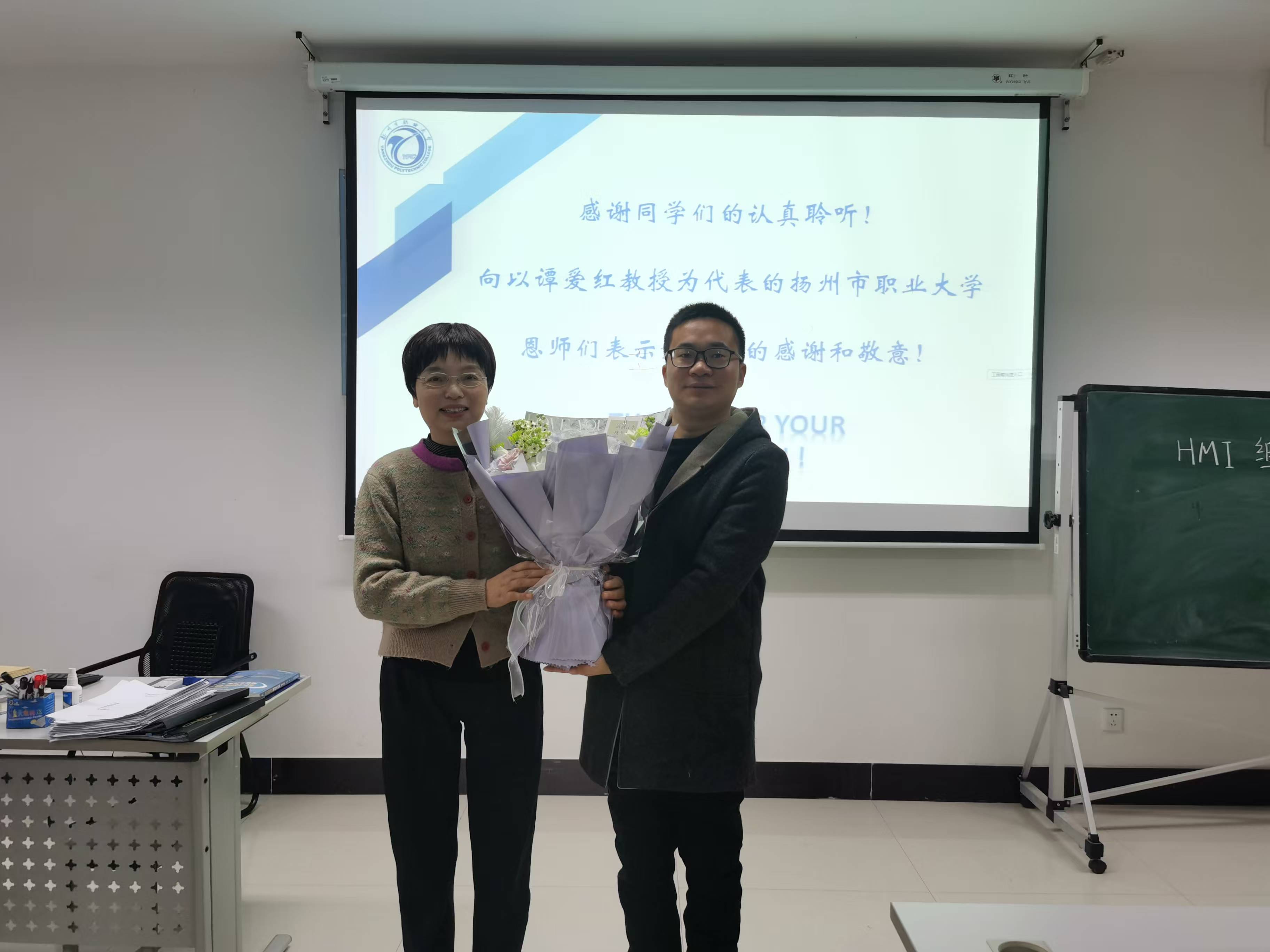 交汇点讯 “触摸屏也就是HIM的画面设计,你看,画面里面就只有两个按钮……”在扬州市职业大学的教室里,去年新入职的张卫星老师正在教授《人机界面》课程。